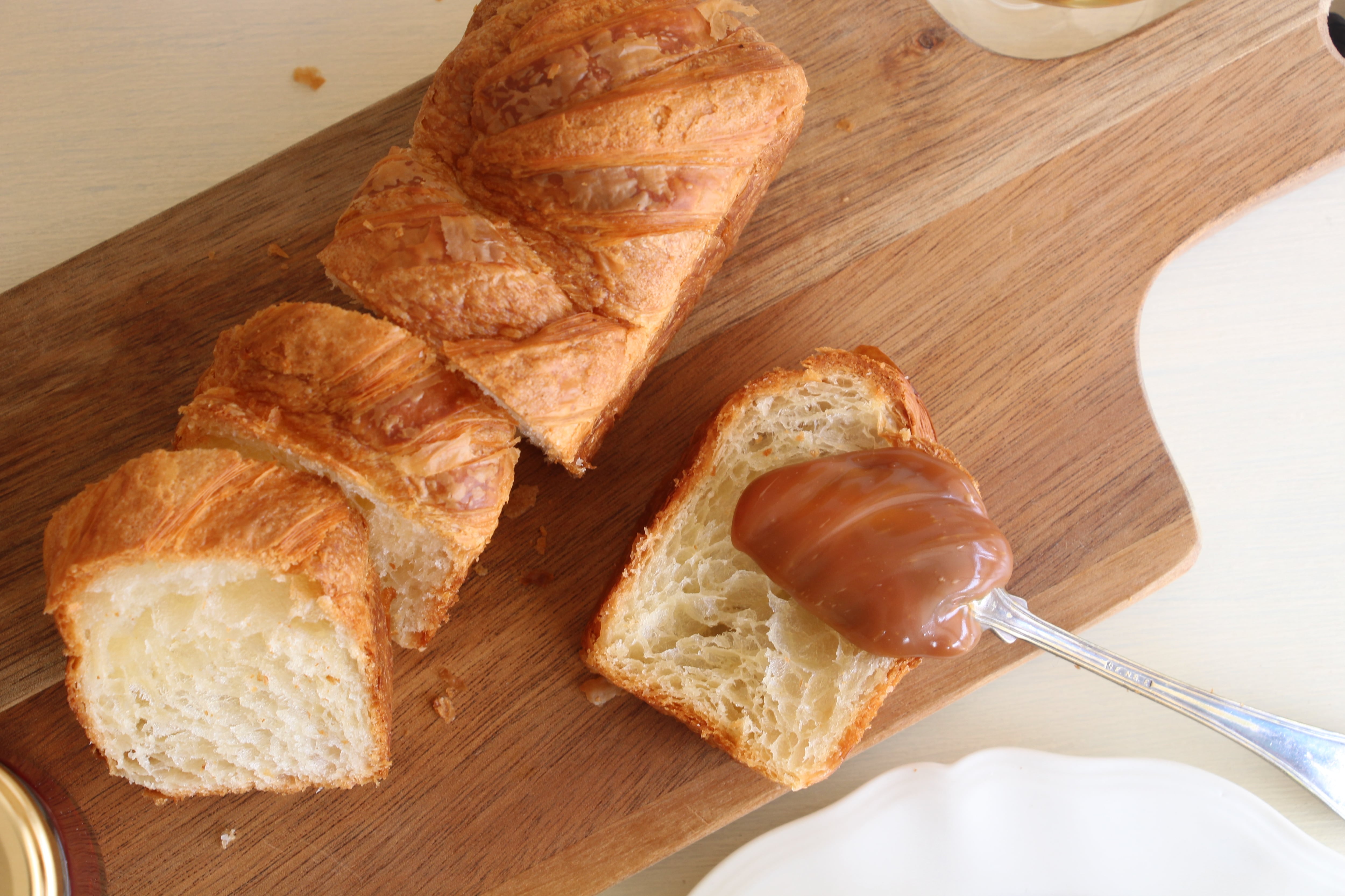 バターたっぷり、贅沢配合のブリオッシュフィユテ。外はザクっと、中はしっとりと、焼き上げた、折り込み生地のブリオッシュです。パティシエ夫婦が田舎フランスで毎週末焼き上げていた、フランスのおしゃれな朝の顔。コンフィチュールを塗ったり、シチューに添えたり、楽しみ方は無限大の万能ブリオッシュ。まずはそのポテンシャルの高さチェックを、手でちぎって一口。食感と香りに目を閉じて、フランスの朝のひとときを、お楽しみください。