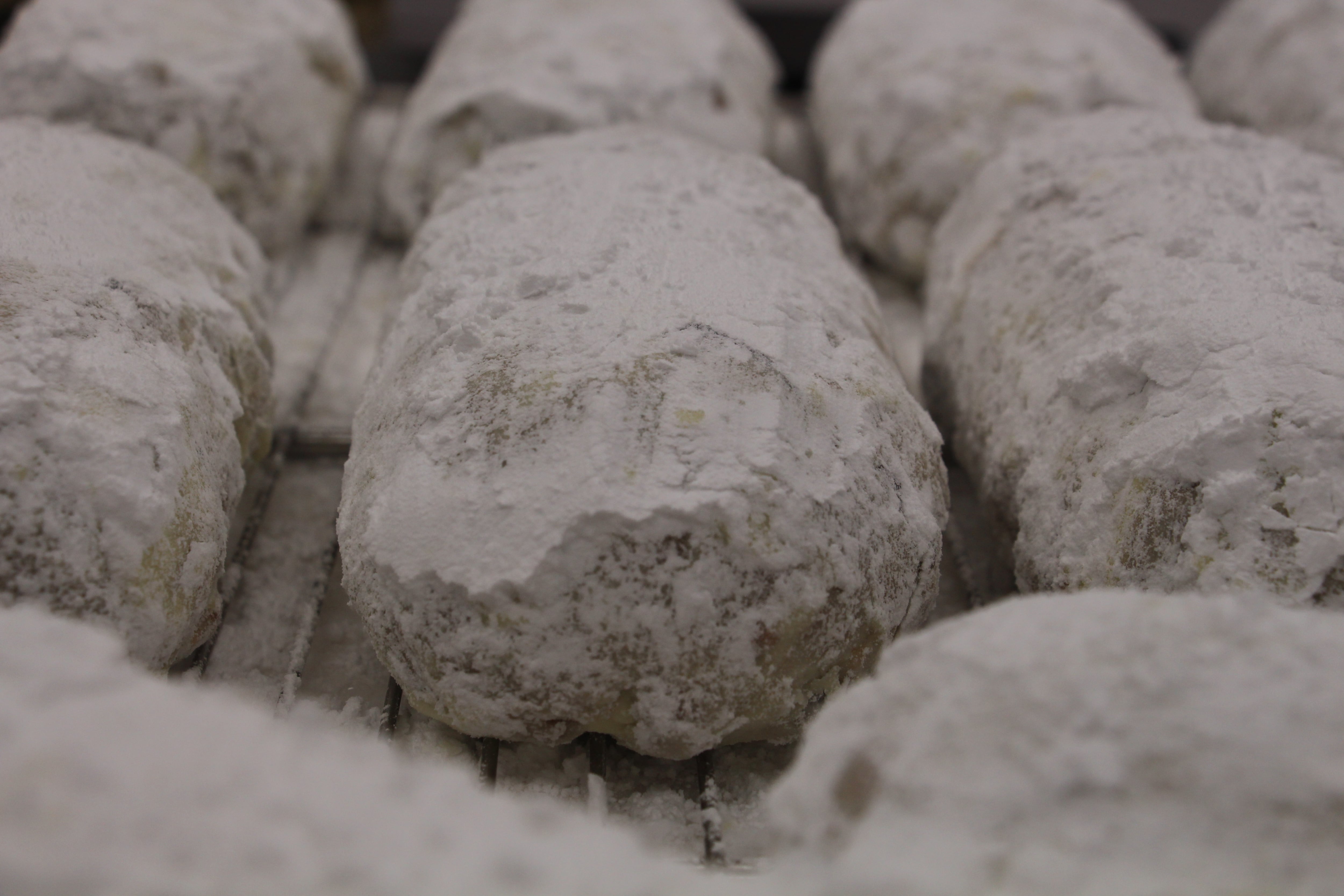 贅沢な澄ましバターに浸し、粉糖で覆って。